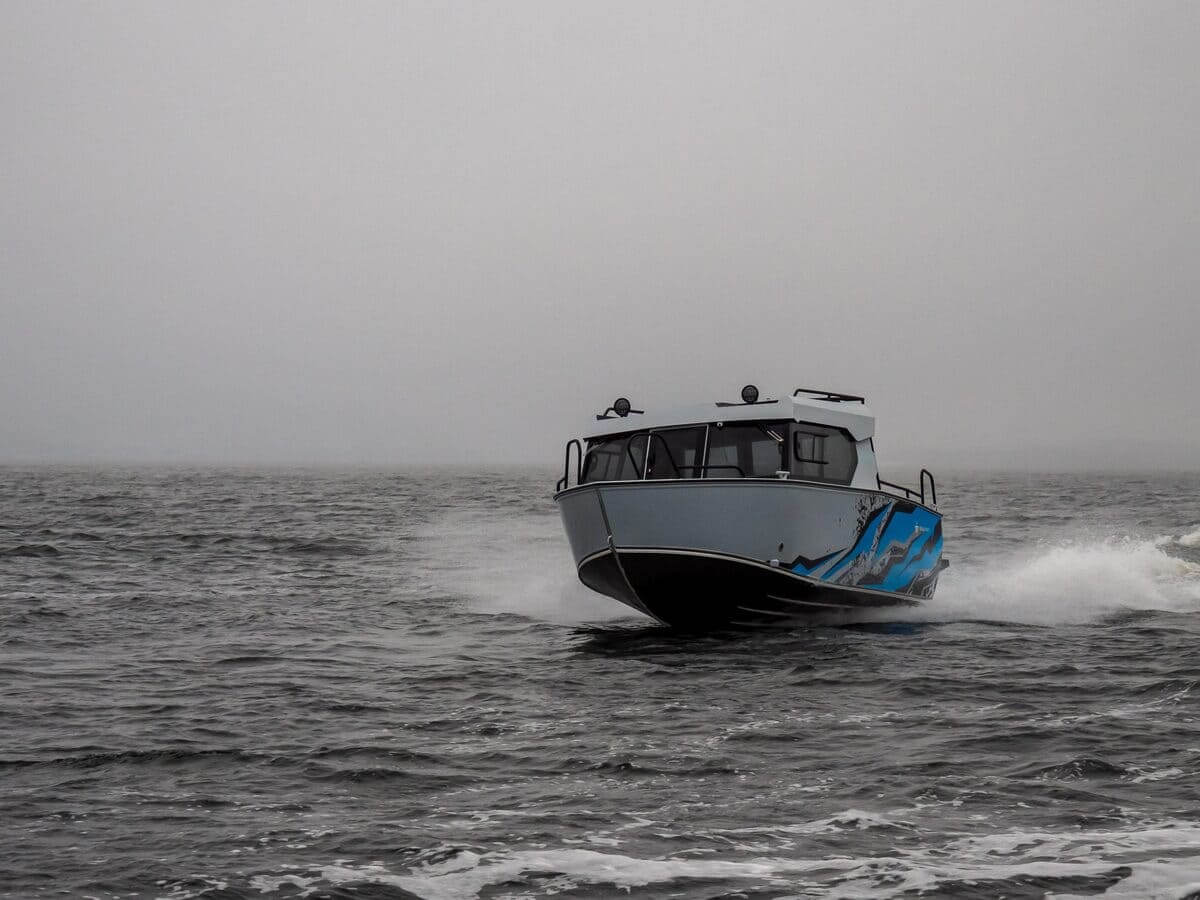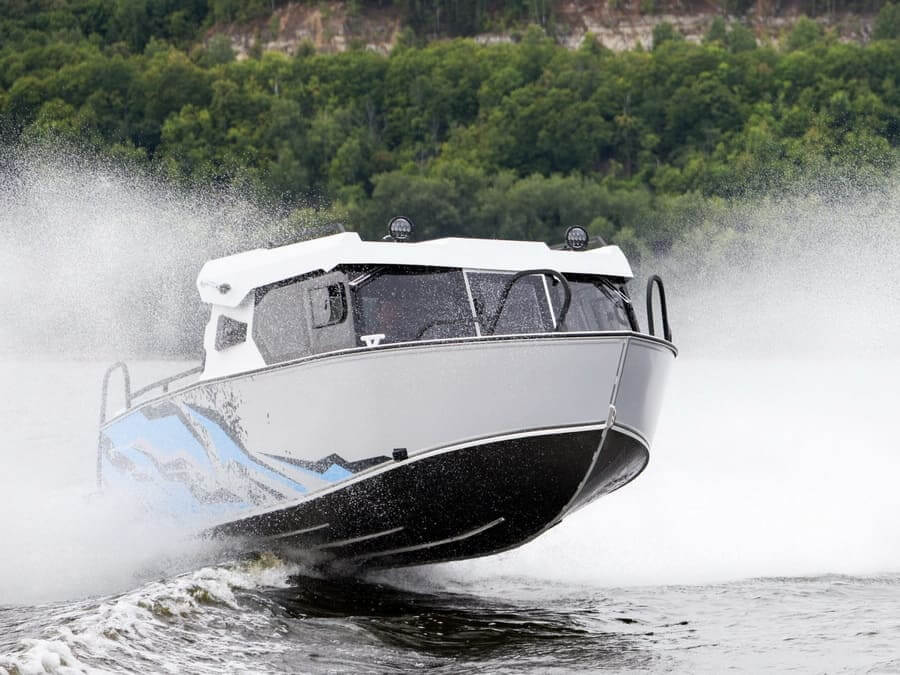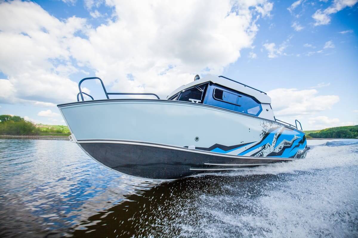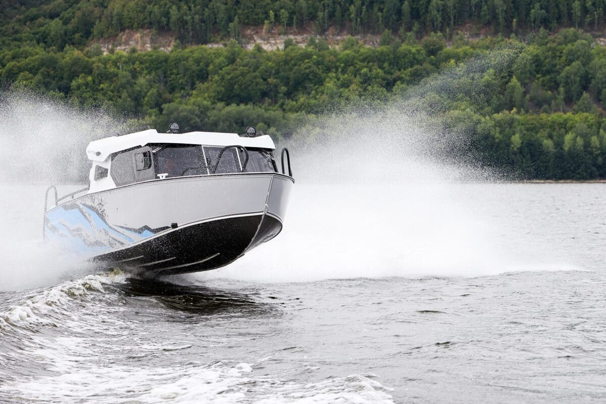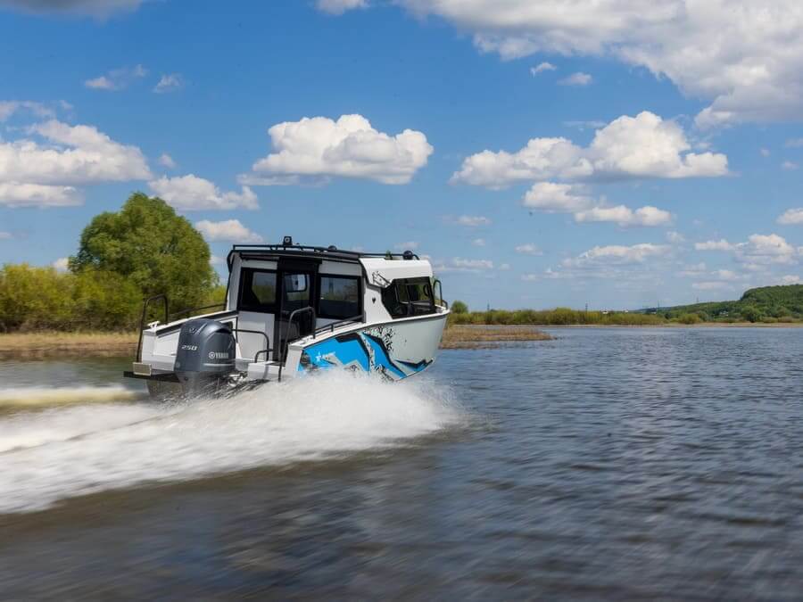 С двигателем максимально допустимой мощности моторная лодка способна ходить со скоростью более 80 километров в час.