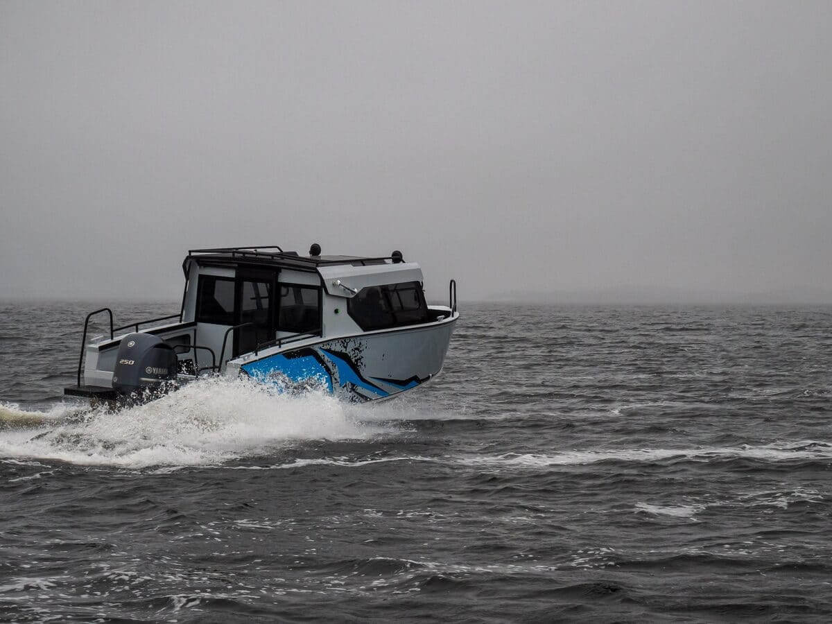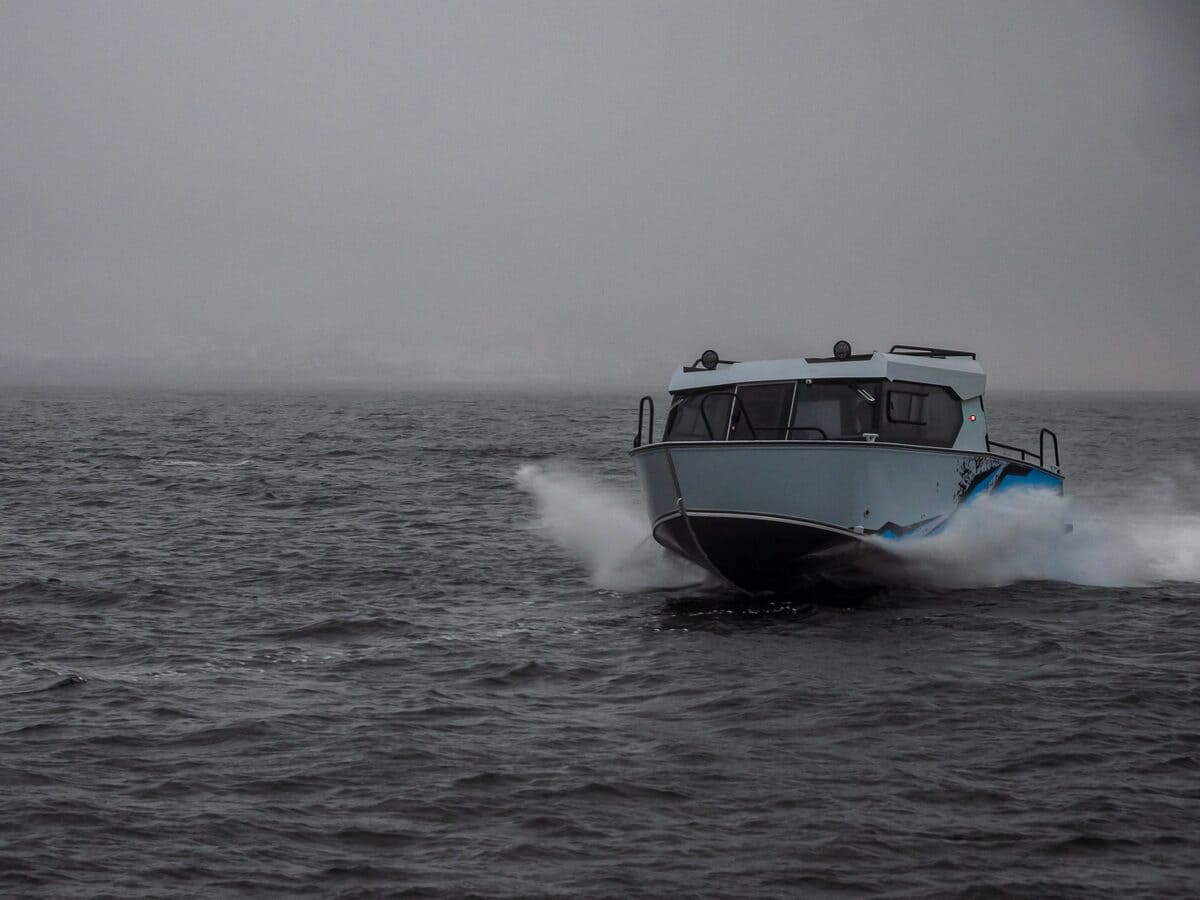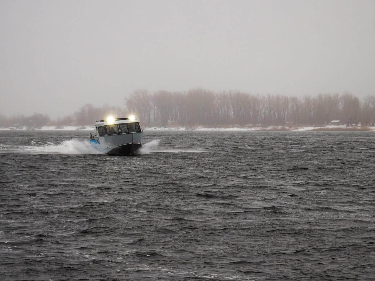 С двигателем максимально допустимой мощности моторная лодка способна ходить со скоростью более 80 километров в час.