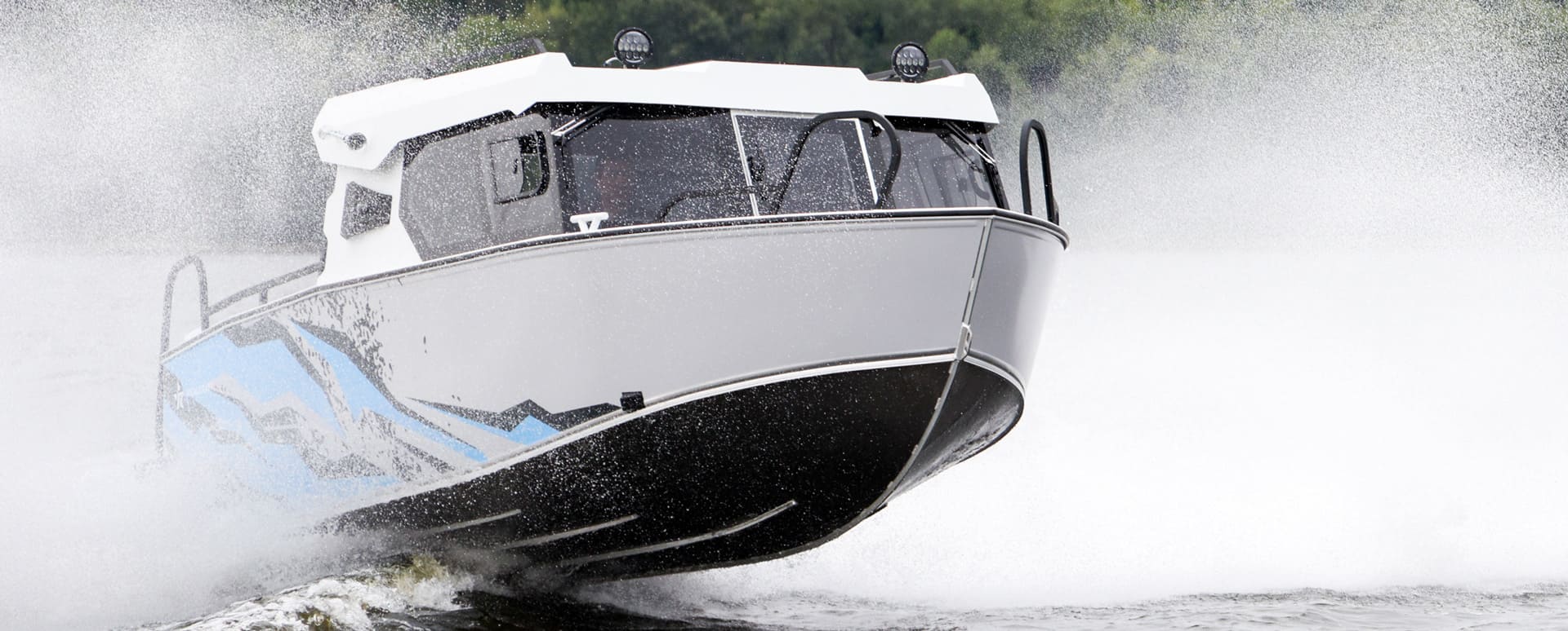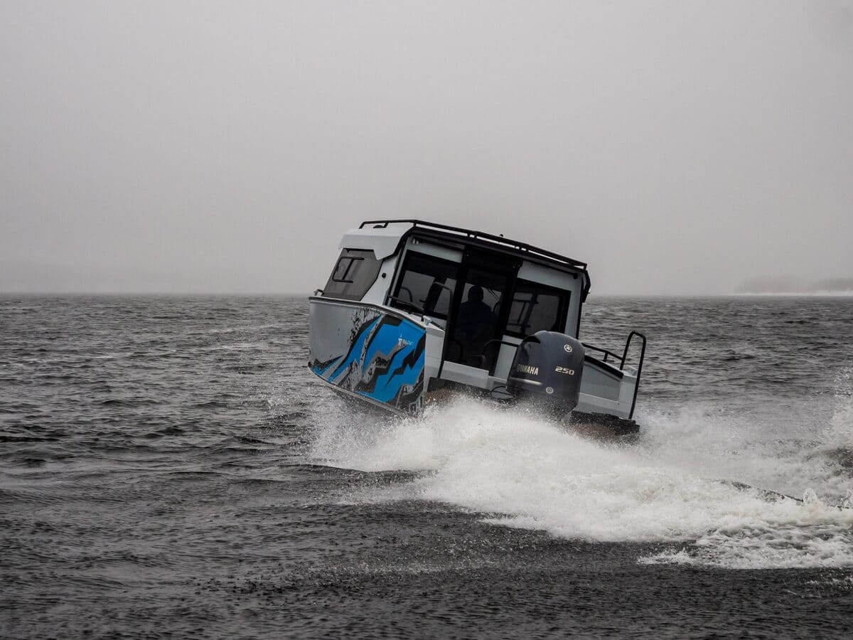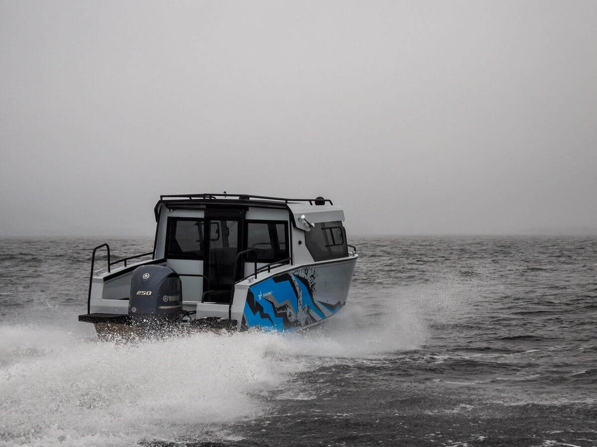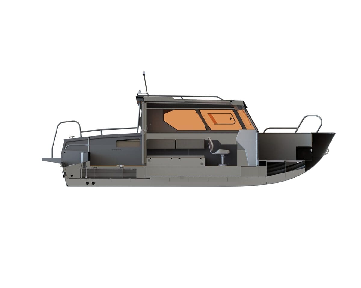 В передней части кабины установлена форточка с дверцей для сквозного прохода. Для выхода на корму установлена панорамная сдвижная дверь. Все остекление выполнено из закалённого стекла. Катер оснащен панорамной крышей со стеклянной вставкой по центру.